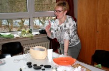 So wurde eine Anleitung zu einer Handmassage vermittelt, und anschließend wurden die Hände mit Hilfe eines Paraffinbades besonders gepflegt. Ebenso konnte man die Hot-Stone Massage kennen lernen oder wie eine Bambusmassage funktioniert.