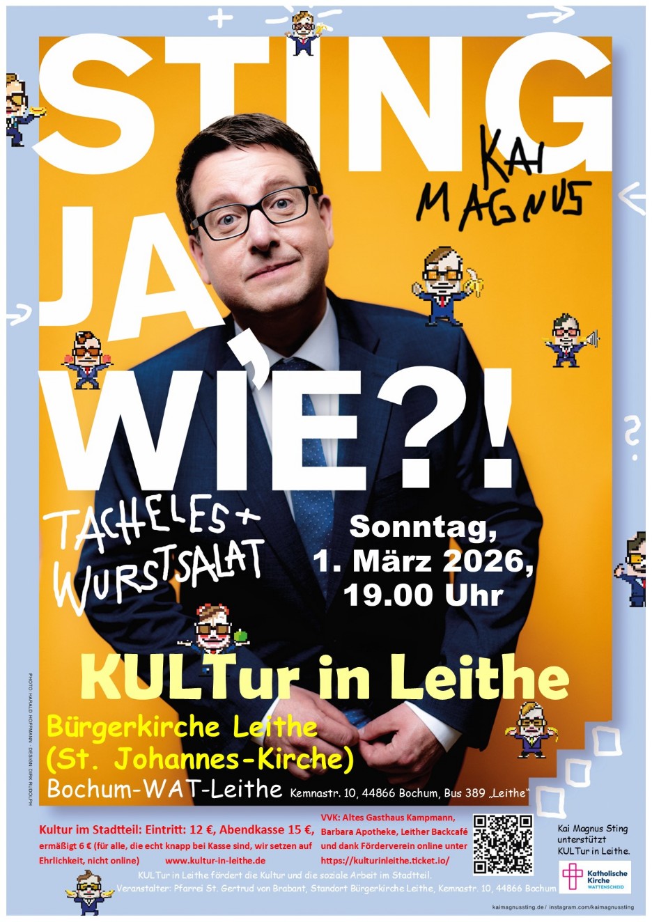 Kultur in Leithe: Kai Magnus Sting, WIRELESS Acappella, ChamberJazz, Die Divanetten, Magic Wobo, Frank Scholzen, Didier Pierre Kugel, Michael Steinke, Die Spielkinder, MunichStreet, Cathal Dolan, The Moone Boys, Roberto Capitoni, Emscherblut, Back to Brass, Alexandra Gauger, Michael Ophelders in verschiedenen Rollen, Robb Murphy, Antonius Gospel Singers, alle waren schon da. Bilder gibt's hier! Und es geht weiter! Kultur im Stadtteil für ALLE!