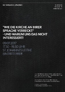 „Wie die Kirche an ihrer Sprache verreckt und warum uns das nicht interessiert“ – eine unterhaltsame Lesung mit Auseinandersetzung gab es am Sonntag 9. Juli 2017 am späten Nachmittag. Ist die kirchliche Sprache eigentlich noch zeitgemäß oder ist sie in den 1980er Jahren hängengeblieben? Welche Sprache braucht die Kirche, damit sie bei den Menschen heute „ankommt“? – So fragt Erik Flügge, Autor des Buches „Der Jargon der Betroffenheit – Wie Kirche an ihrer Sprache verreckt“. Kritisch nimmt der Autor die kirchliche Sprache unter die Lupe und plädiert für eine Veränderung der Kommunikation in der Kirche. Martin Diem, Gemeindemitglied aus St. Johannes, beruflich im Jugendbereich auf Diözesanebene und freiberuflich als Organisationsberater tätig, und Andreas Bierod, Geschäftsführer der Paderborner Malteser, lasen in der Kirche St. Johannes aus Flügges Buch und diskutierten offen und kontrovers zu diesem Thema. Angesprochen waren vor allem junge Erwachsene zwischen 20 und 40 Jahren, aber ebenso waren alle anderen Interessierten willkommen und zwar nicht zahlreich, aber doch gekommen. Im Anschluss an die Lesung war dann Gelegenheit zu Diskussion und Gespräch in gemütlichem Rahmen drinnen und draußen – wie’s beliebte. Es war mal etwas ganz Anderes! Und in sehr edlem Ambiente.