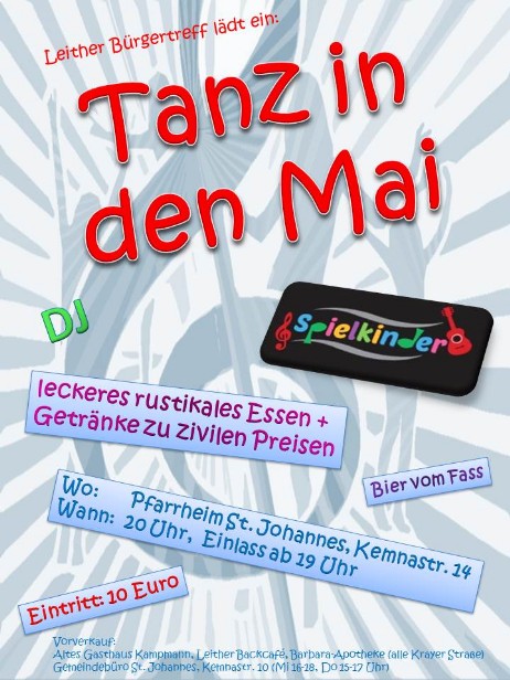 Erster TANZ IN DEN MAI im Gemeindeheim - organisiert vom Leither Bürgertreff. Bilder folgen.