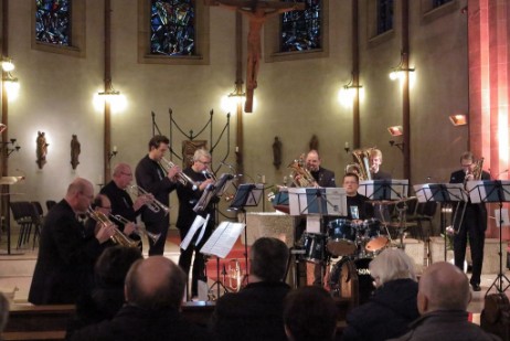 Am Sonntag, 29. Januar, war im Rahmen der Veranstaltungsreihe KULTur in Leithe in unserer Kirche St. Johannes in Leithe das Bläserensemble „Back to Brass“ zu Gast. „Back to Brass“, das ist eine Gruppe hoch motivierter und auch hoch professioneller Bläser aus Wat-Leithe und Gelsenkirchen, die zum Teil schon seit ihrer Jugend zusammen musizieren. 2004 haben sie sich unter der Leitung von Christian Ollesch zur Bläserformation „Back to Brass“ zusammengetan. Musikalisch hatte die Truppe sich zwischenzeitlich auch mal aus den Augen verloren, sich aber dann doch wieder gefunden. Wie gut sie früher waren, weiß ich nicht; heute jedenfalls sind sie erstklassig! Warum eigentlich „Back to Brass“? - Übersetzt heißt „Back to Brass“ „zurück zum Messing“ oder eben auch „zu den Blechbläsern“. Dabei wird schon deutlich, wer sie sind: Musiker, die ohne Verstärkung spielen, unplugged, reine Blechbläser, mehrere Trompeten, Posaunen, Tuben, ein Euphonium. Einer am Schlagwerk begleitet und komplettiert das Ensemble. Christian Ollesch, nicht nur Dirigent, sondern auch selbst Trompeter in dem Ensemble, hat schon mit neun Jahren seine erste Trompete geschenkt bekommen; von da an ist er, wie er sagt, von der Faszination, die das Instrument von Anfang an auf ihn ausgeübt hat, nicht mehr losgekommen. Seine erste Trompete hat er immer noch; hergeben würde er sie nie! Ein großer Ansporn speziell für Christian Ollesch: Sein Großvater hatte damals auch schon die Leitung eines Posaunenchors. Zum Ensemble gehören von der Ollesch-Familie neben Christian noch drei andere Brüder, Walter (ebenfalls Trompete), Ernst (Euphonium) und Markus (Tuba). Alle sind gebürtige Leither; ein Teil der Familie lebt immer noch in Leithe. Als ich Christian Ollesch gefragt habe, ob er sich vorstellen könnte, mit „Back to Brass“ im Rahmen von KULTur in Leithe ein Konzert zugunsten der caritativen Arbeit in Leithe in unserer Kirche zu geben, da war er sofort dabei: „Für Leithe und St. Johannes – na klar!“ - Und so durften die Zuhörerinnen und Zuhörer in der fast voll besetzten Kirche am vergangenen Sonntag an einem wahren Hörerlebnis teilhaben. Schöner, gefühlvoller, bewegender kann Blasmusik kaum sein als das, was wir am Sonntag gehört haben: Großartige Hymnen wie „One moment in time“ von Whitney Houston oder „Heal the world“ von Michael Jackson oder auch flotte Gospels, die jeder kennt, das Böhmische Wintermärchen, den einen oder anderen Tanz oder weltbekannten Marsch – und in allem wehte spürbar und hörbar der „Spirit of Brass“, der Geist der Blechbläser. Die Akustik und die Ausstrahlung des Kirchenraums haben das Ihre dazu beigetragen, dass dieses Konzert ein unvergesslicher Hörgenuss wurde. Die Musiker bekamen minutenlange standing ovations!