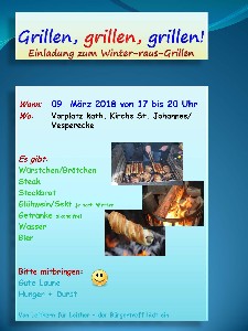 Rückblick: „Winter-raus-Grillen“ in Leithe hieß es wieder am 9. März ab 17.00 Uhr auf dem Kirchenvorplatz.