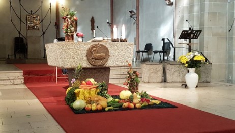 Am Sonntag, 11. Oktober 2020, gab es um 11.00 Uhr in der Hl. Messe viel zu feiern: Erntedank (bei uns etwas später wegen der Erstkommunion), den Festtag Maria, Mutter vom guten Rat, Patronin des Bistums Essen und auch, quasi nachträglich, die Erstkommunionfeier. Wir zeigten Eindrücke von der Erstkommunion.