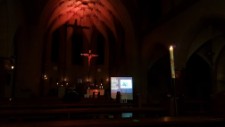 Impressionen vom 19. Mai: Musik von oben mit großem Abstand, begrenzte Teilnehmerzahl, neben Schriftimpuls und Licht ein grüner Punkt mit dem persönlichen Sitzplatz: Taizé-Gottesdienst in besonderen Zeiten. Aber Akustik und Atmopsphäre waren wohltuend! Gerade jetzt!