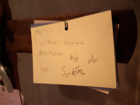 Lieber A., wenn du diesen Pfarrbrief in die Hände bekommen und dein Kärtchen auf dem Foto wiedererkennen solltest, dann melde dich gern bei mir, wenn du magst. Ich würde mich sehr freuen, dich kennenzulernen!
