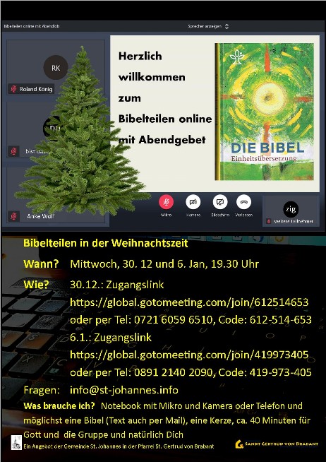 Ein Angebot der Gemeinde St. Johannes für alle, die am Heiligen Abend Geselligkeit suchen. Die Teilnahme ist auch mit dem Smartphone möglich.