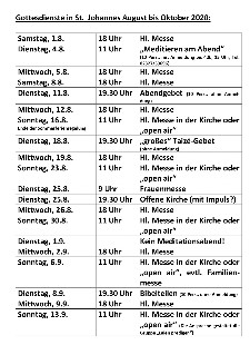 Information zur Gottesdienstregelung in St. Johannes in den Sommerferien 2020
