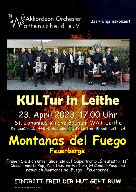 "KULTur in Leithe" präsentierte: "Montanas del Fuego" - Feuerberge - das Frühjahrskonzert des Wattenscheider Akkordeonorchesters. Impressionen: