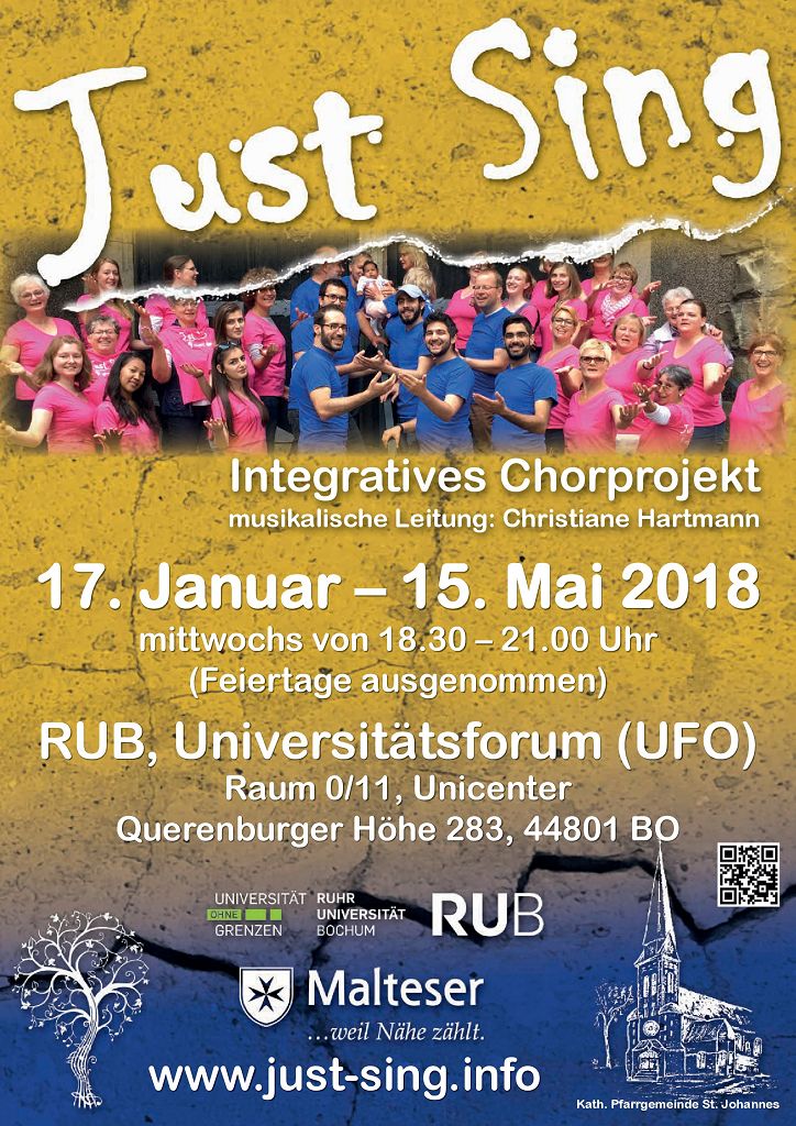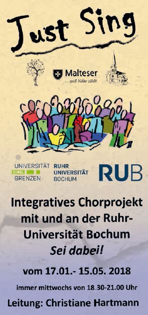 Der Malteser Hilfsdienst e.V., die katholischen Gemeinde St. Johannes (Bo-Leithe) und nun neu die Initiative "Universität ohne Grenzen" an der RUB laden zum integrativen Chor-Projekt Just Sing ein.
